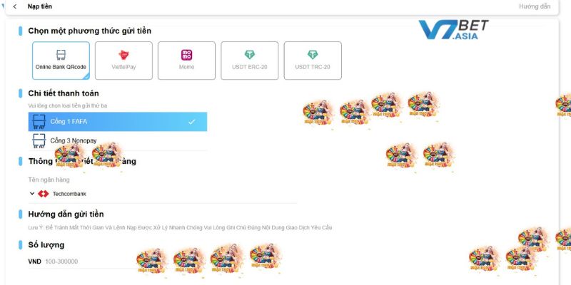 Các hình thức nạp tiền V7BET được hỗ trợ